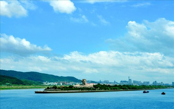 从长沙乘车前往韶山,随车的导游是一位眉清目秀的土家族青年,操着一口带有浓重湖南乡音的普通话,一路指指点点,滔滔不绝,以致嗓子有些沙哑,真算得上是一位殷勤热情的好导游。当汽车驶到湘江大桥时,他高声朗诵起毛泽东著名诗篇《沁园春·长沙》:“独立寒秋,湘江北去,橘子洲头,看万山红遍,丛林尽染……”抑扬顿挫,声情并茂,很有几分艺术感染力。侧身朝窗外望去,只见北去的湘江水浩浩荡荡,流向苍茫天际,江心狭长的橘子洲郁郁葱葱,宛如一条绿色飘带。此时此刻,年轻的毛泽东风华正茂、指点江山、激扬文字的青年才俊的形象仿佛浮现眼前。
