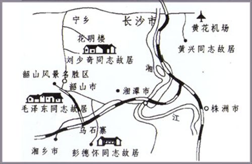 位于省会长沙的黄花机场,距韶山风景名胜区90公里(公路距离) ,只有一个半小时的路程。