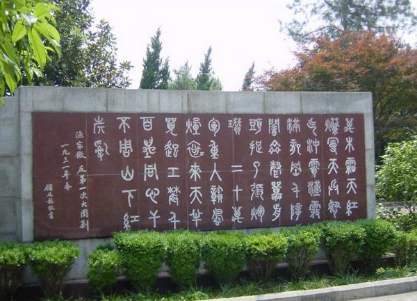 按作诗时序毛泽东诗词碑林分四个时期设五大景区,荟萃石壁流泉,六朝松,四方竹,飞来船等奇观,共有景点50多处,共刻有毛泽东诗词50首,其中毛泽东手迹 28首,海内外著名书法家手书22首, 整个碑林为自然园林式设计,依山就势,择势而立,使诗词的艺术特色与周围的自然环境互相映衬,给人以无尽的思念和遐想。其规模为全国之最。