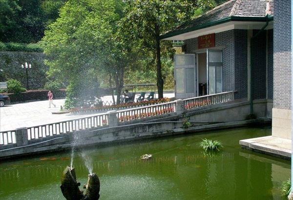 从拱门进去,只见古松遮天盖日,樟木苍翠欲滴,小鸟林间欢唱,微风迎面送来阵阵幽香。韶山松山一号楼就在这里依山傍水而立,名为楼,实为青砖青瓦外表普通的平房。
