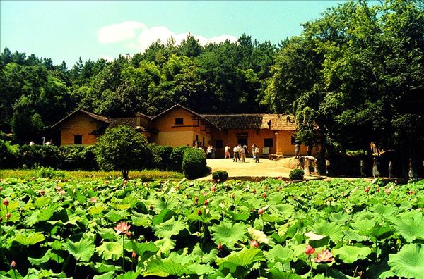 故居的前面是荷花塘和南岸塘。毛泽东同志一生酷爱游泳,南岸塘就是他少时“习武练艺”的最好地方。1963年11月,郭沫若参观韶山时,曾指着这口塘感叹地说:“毛主席是少时游池塘,老年游长江啊!”