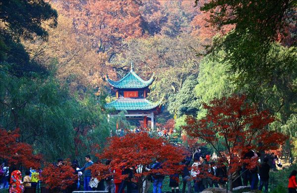 岳麓山揽胜,自然要看那遍布的古迹。自西汉以来,尤以云麓宫、岳麓书院、麓山寺、望麓亭、唐李邕麓山寺碑、宋刻禹王碑最负盛名。长沙的“爱晚亭”和安徽的“醉翁亭”、北京的“陶然亭”、西湖的“湖心亭”同列中国四大名亭。还有白鹤泉、清风峡、望风阁、来石、自鸣钟、响鼓岭、蟒蛇洞、舍利塔等,每一处名胜古迹都带有美丽动人的神话故事,令游人流连忘返。